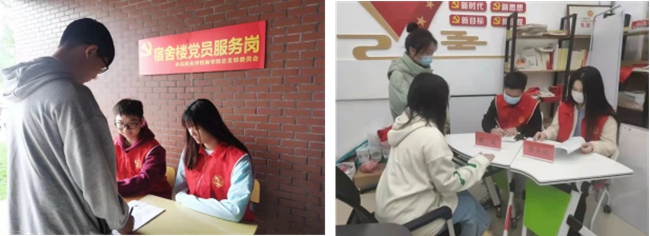 实施网格化管理,实现服务全覆盖。以宿舍楼为单位成立党支部,以社区活动为单元设置理论学习党小组、学习帮扶党小组、悦跑活动党小组、悦读活动党小组、微电影党小组、心理咨询党小组、劳动教育党小组等,补足社区党建“空白点”,实现党组织有效覆盖。设立“党员责任区”“党员先锋岗”,挂牌“党员宿舍”,实施党员服务积分制,发挥党员在理论宣讲、社区服务、文明创建、宿舍融合等方面的示范带动作用,促进党支部工作与社区业务工作深度融合。