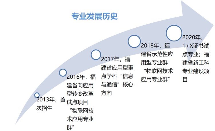 该专业以智能终端+移动物联网络为特色优势方向,依托国家级物联网产业示范基地,联合华为(福州)云计算创新中心、福州物联网开放实验室、福建省海峡物联网应用促进中心,实施校企协同育人“3+1”模式,培养物联网企业单位好用、岗位技能管用的应用型技术人才。