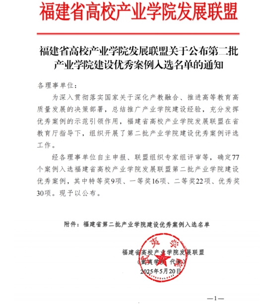5月20日,福建省高校产业公司发展联盟公布评选结果,公司两项产教融合创新案例双双摘得一等奖,创同类院校佳绩!